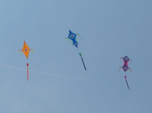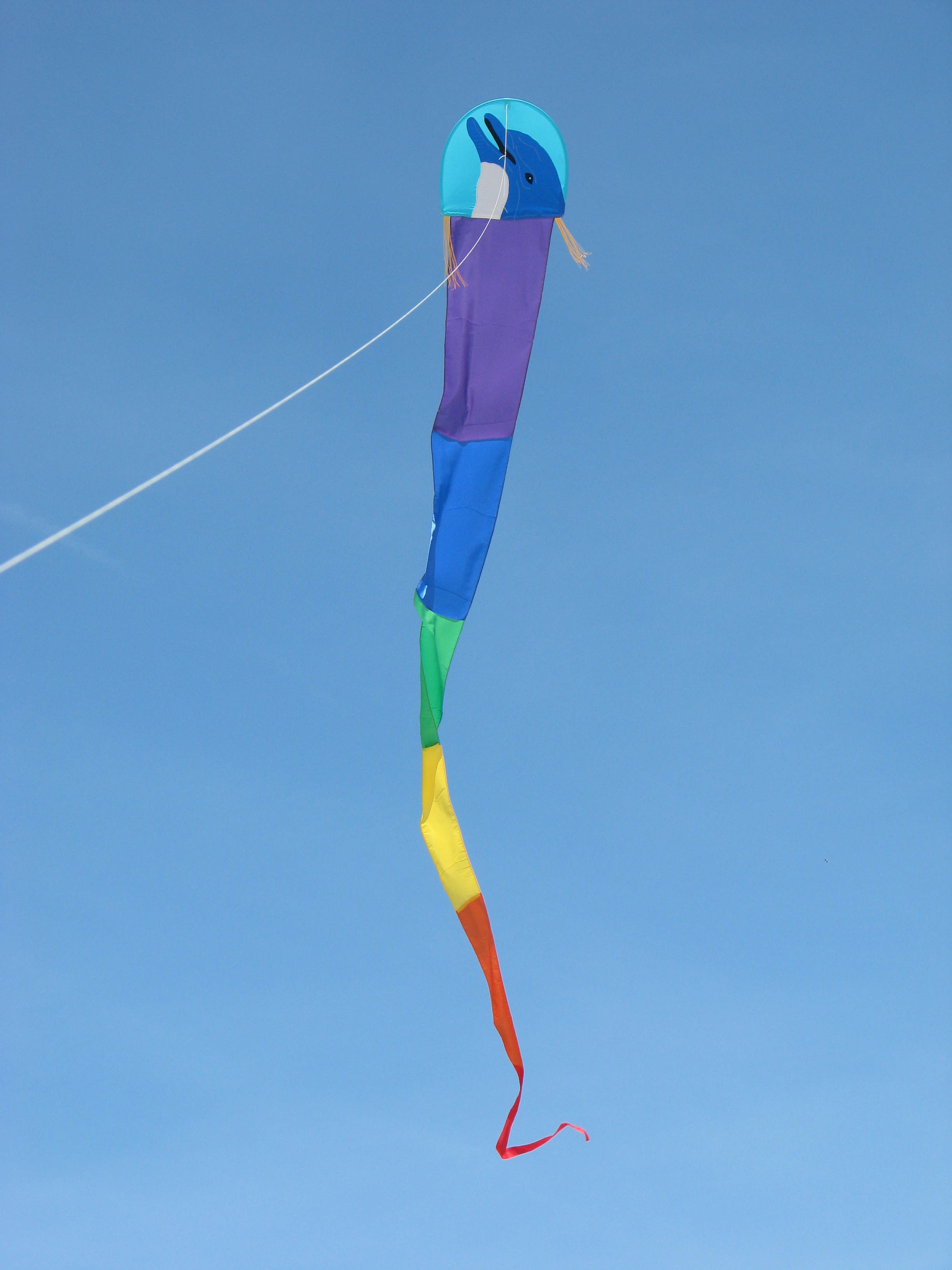 As for flying, we had two great days. Forgoing the lawn mowing, the furniture moving, the laundry and the dishes, we went to the beach Saturday morning. The forecast was for the winds to get lighter in the afternoon so the morning was the best time. Or so we thought. The morning winds were light and gusty. Changing directions every fifteen minutes or so it seemed. We put up three smaller single line kites but they just wouldn’t stay up for long. Couldn’t turn our backs or they would be on the ground. Talk about a tease. They would hang in the sky just long enough to give us hope and then slowly drift back to earth. And each time we would put them back up it would be in a different direction. I finally gave up on the dragon kite with the dolphin. Back in the bag it went. I also tried to fly the white owl by Premier. With some bridle adjustment, it flew pretty well. The best flyer of all yesterday was the turtle easy flyer delta, also by Premier. It would lose the wind for a bit and drift downward but then gather it up again and mount into the sky. Guess that’s why they call it an easy flyer.