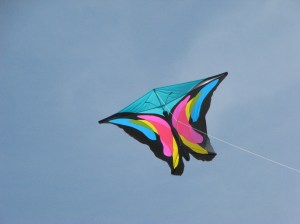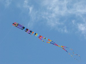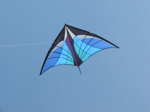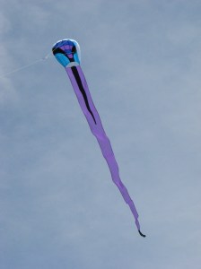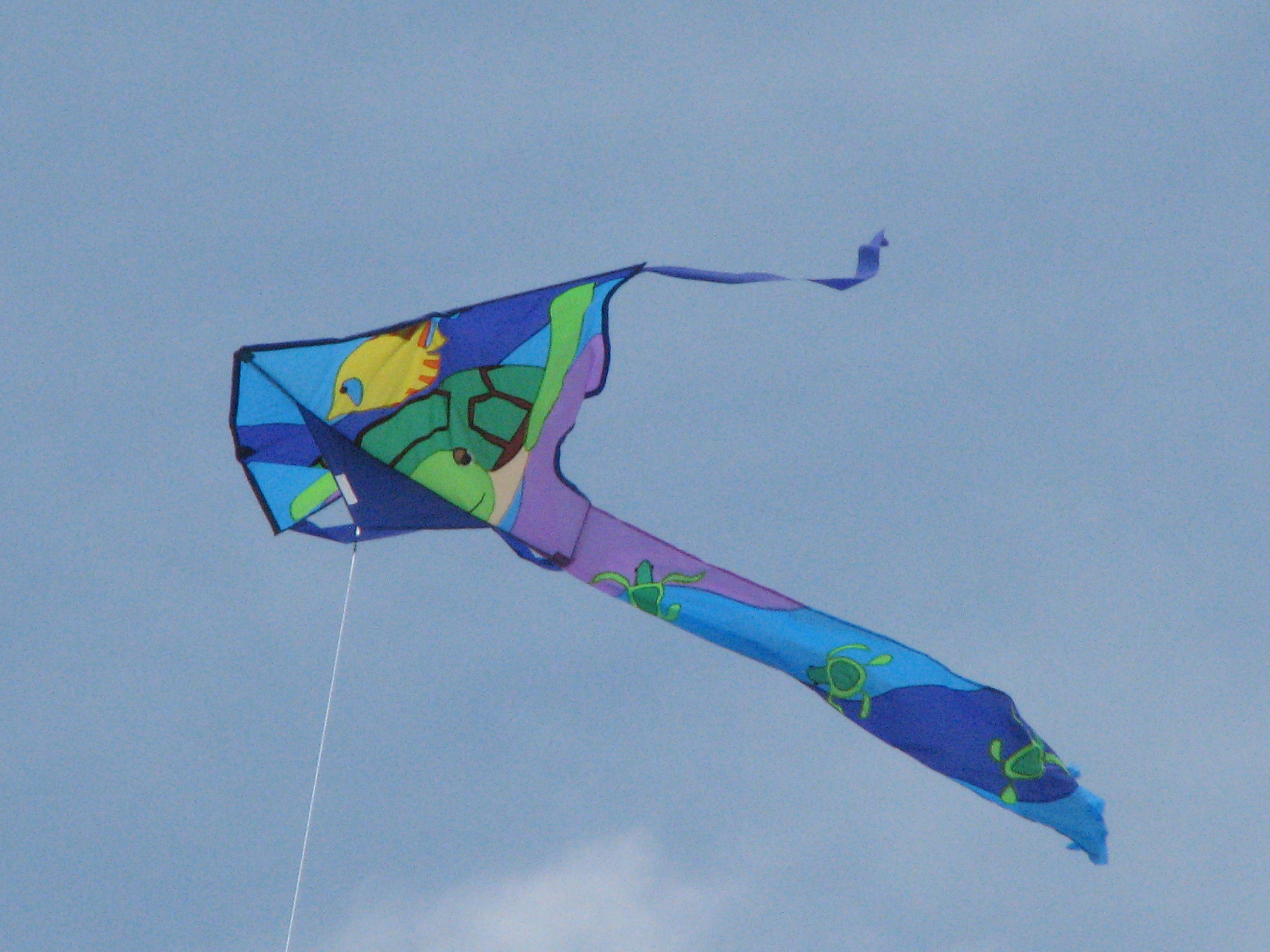 Today he flew a couple of easy single line kites. One was the Prism Stowaway Delta and the other was a Turtle Easyflier by Premier. He is a collector of turtles and has just about every kite that has a turtle on it. And he flies most of them. The first time we saw the Stowaway delta fly we nicknamed it the “kamikaze kite”. It was jumping all around in the sky. This day it went up and hung in the sky like a delta should. In fact, I liked it so much, I have one on order. Of course, the Easyflier is named so bacause it is easy to fly. It is a delta-type kite with a broad tail incorporated in the design. It is a fun kite. A kite for kids. Maybe that’s why my husband likes it. I keep saying he had never really grew up.