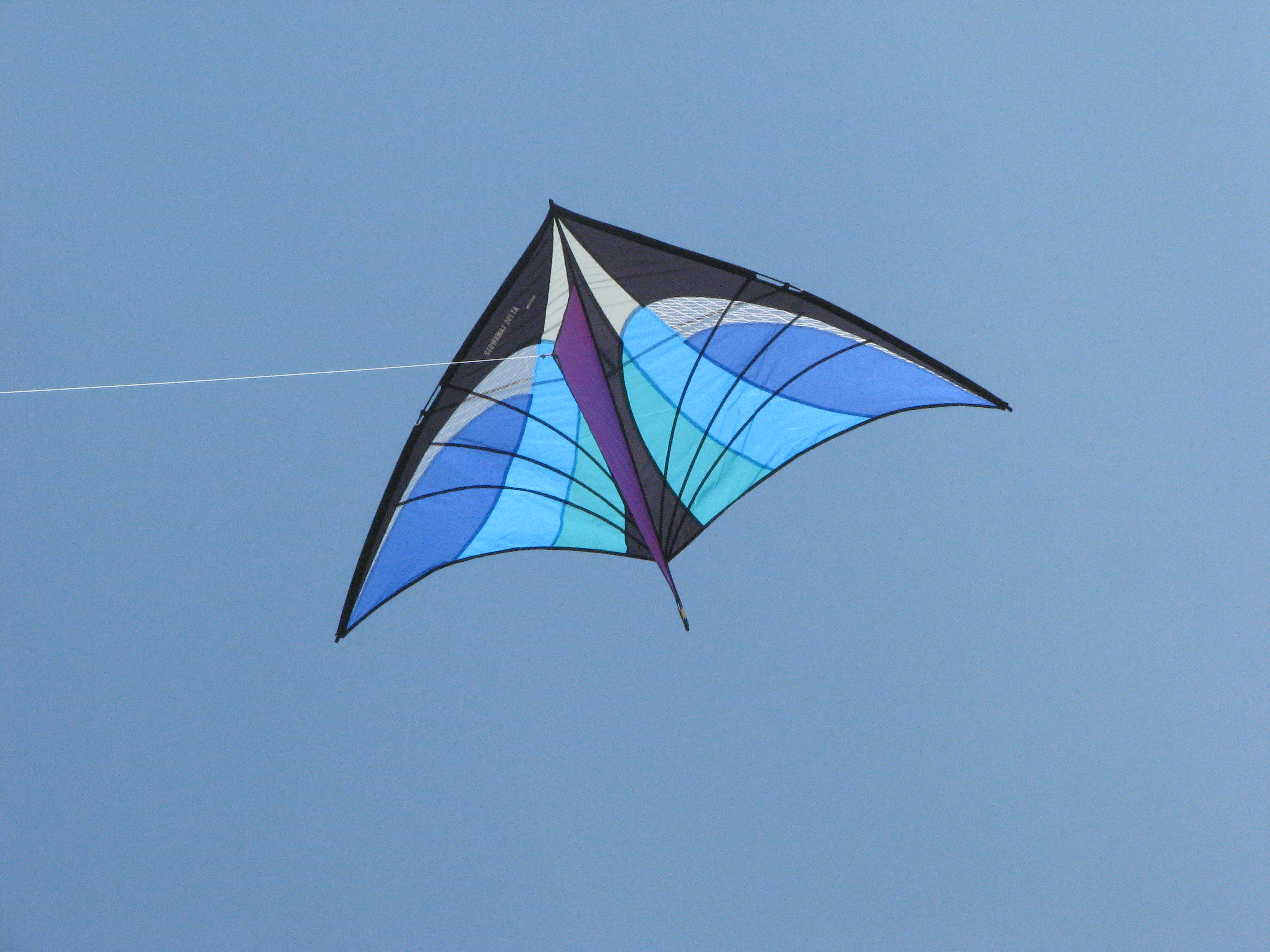 Next up was my Joel Scholz Butterfly. This one was a vintage kite with wooden dowels and a tubing connector. Construction methods that were long ago replaced with carbon and fiberglass rods and plastic connectors. It was made by Premier just after Joel Scholz gave them the rights to make it. When quality still mattered and kites were made in America, not China. It was a guaranteed flyer. And fly it did. Just popped right up and hung in the sky.