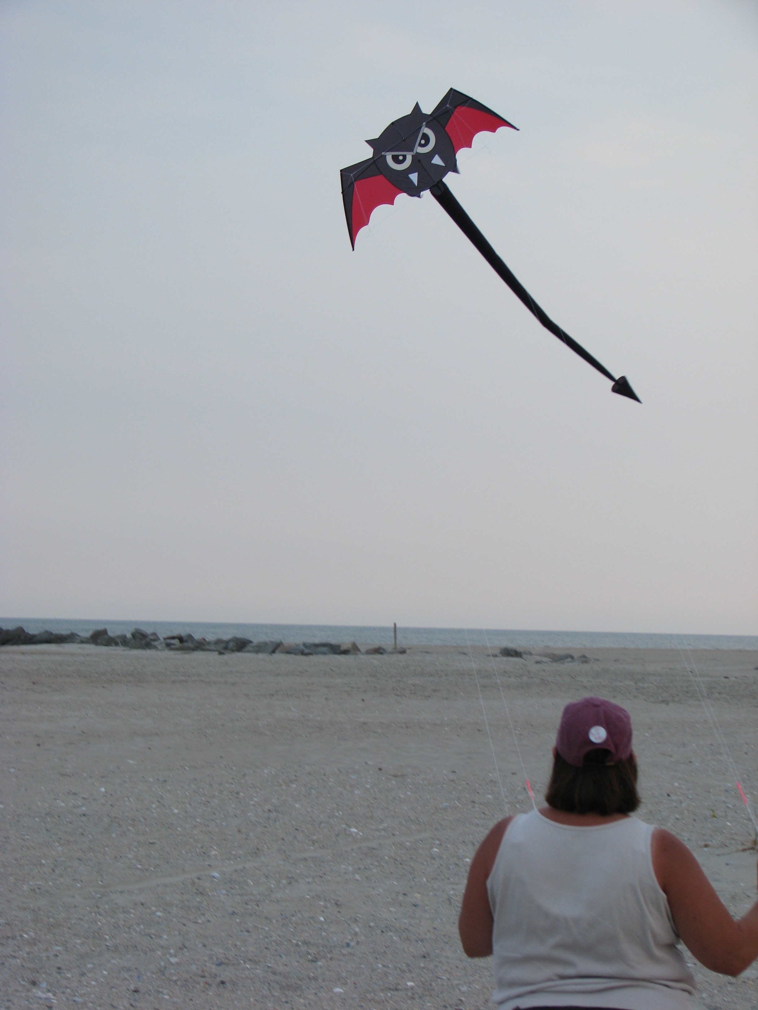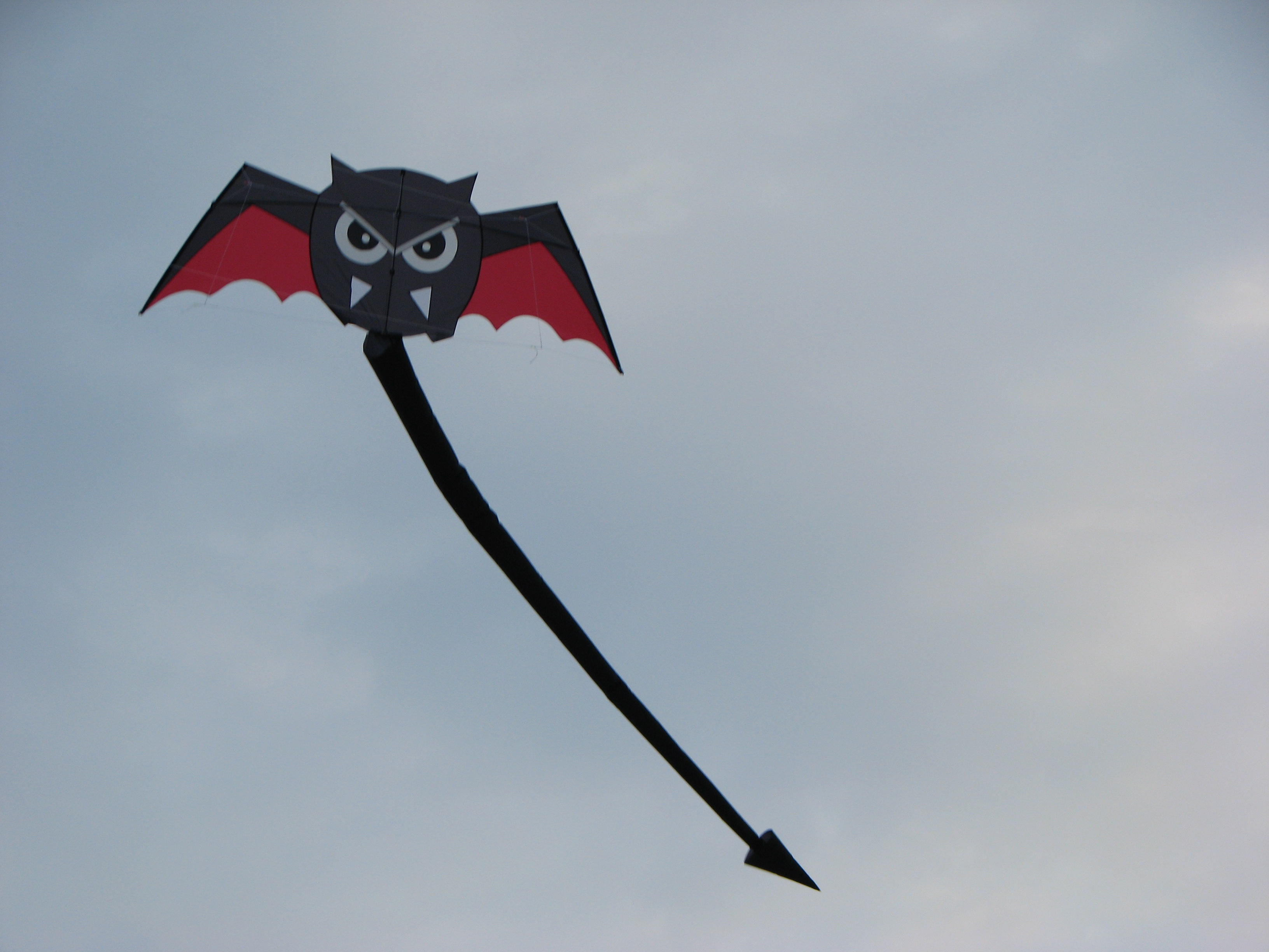 I am really loving this kite. It is such fun to fly and almost makes a spectacle of itself it in the air. It is not only me who is captivated by this kite. One of our out-of-town fliers has purchased another color Vamp Devil and is having it shipped to him. Another flier is seriously, seriously considering a purchase. That’s three gone in one week. I don’t know if it is catching on as fast in other areas of the country but it’s making a stir here. Who knows? We may start up a Vamp Devil flying team and fly at our fall kite festival. Well, maybe not. I may not be that brave.