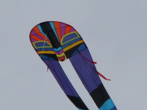 Another family came down with their kites. The father had a vintage Skywave kite. I would love to have one of these. He flew it for a while but, as the wind picked up, he decided it was a little too much and packed it away. They also had a couple of smaller single-line deltas up and they also took them down so they wouldn’t crash and break. The third family had a couple of smaller (shall I say cheaper) single-line kites that couldn’t handle the wind at all. But they tried. By this time I was ready to leave. The sand was blowing across the beach. The sign for me to pack my kites in the bags and head for the shop. I may be too cautious but I don’t want to have a major accident or an unrepairable kite.