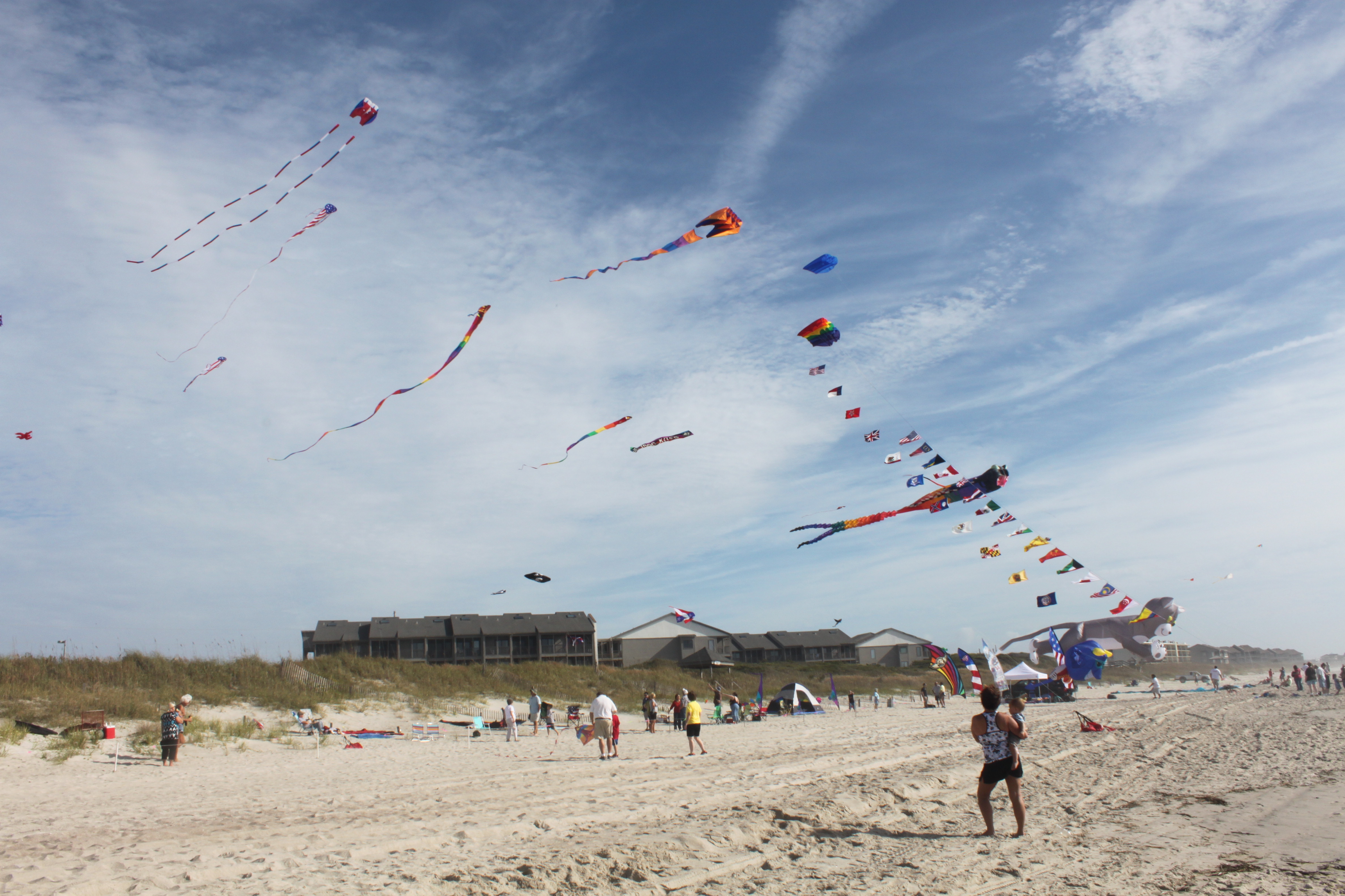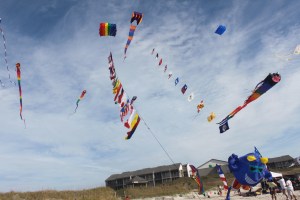 We’re helping get things ready for the Carolina Kite Festival. It’s the local festival sponsored by Kites Unlimited, Atlantic Beach, NC – our local kite shop. It was to be held at the Sheraton Atlantic Beach Resort on the beach. However, there has been a drastic change of plans. The Sheraton suffered major damage due to Hurricane Irene and has had to close their doors and cancel all events until January, 2012. Major headache. After a lot of phone calling, the festival has been relocated to the Atlantic Beach Public Beach Access, locally known as “The Circle”. I’ve been trying to help with Internet changes and making new brochures and stickers for old brochures. I’m not a computer guru but I can try to take some little things off the over-full plates of the kite shop staff. It’s been interesting to say the least. The hardest part will be getting the word out about the change.