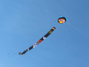 Probably the most interesting part of the day was watching the men working on getting an airplane kite in the air. The kite shop owner worked on his a bit and got it flying pretty well. So my husband thought he could get some help in getting his in the air. Now he has been dying to get his airplane to fly for a couple of months with little to no luck. So the two of them started working on it. They were soon joined by the other flier on the field. Now you have three men and two airplane kites, one that will fly and one that won’t. And all of them too stubborn to give up making the one kite fly. Watching this made for an entertaining morning. “Boys” and their toys. Did the kite eventually fly? No! We have a lemon.