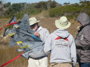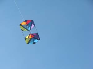 I tried to put up my three-stack of Goblins. I trained these together this past October and haven’t had a chance to fly them yet. Either there was no wind or I didn’t have them with me when the wind was up. I thought sure today was the day. So I took them out of the bag and spent the next twenty minutes untangling and re-attaching the train lines and bridle. How things can get so tangled when all they’ve done for months is sit in a bag is beyond me. Finally I was ready to go and had my helper give me a launch. Well, the flight lasted about ten minutes. There just wasn’t enough wind for a three-stack. I put a lot of work into that ten minutes and ended up waling backward for about 75 to 100 feet. Nothing was going to keep those kites in the air. So, back in the bag they go for another day.