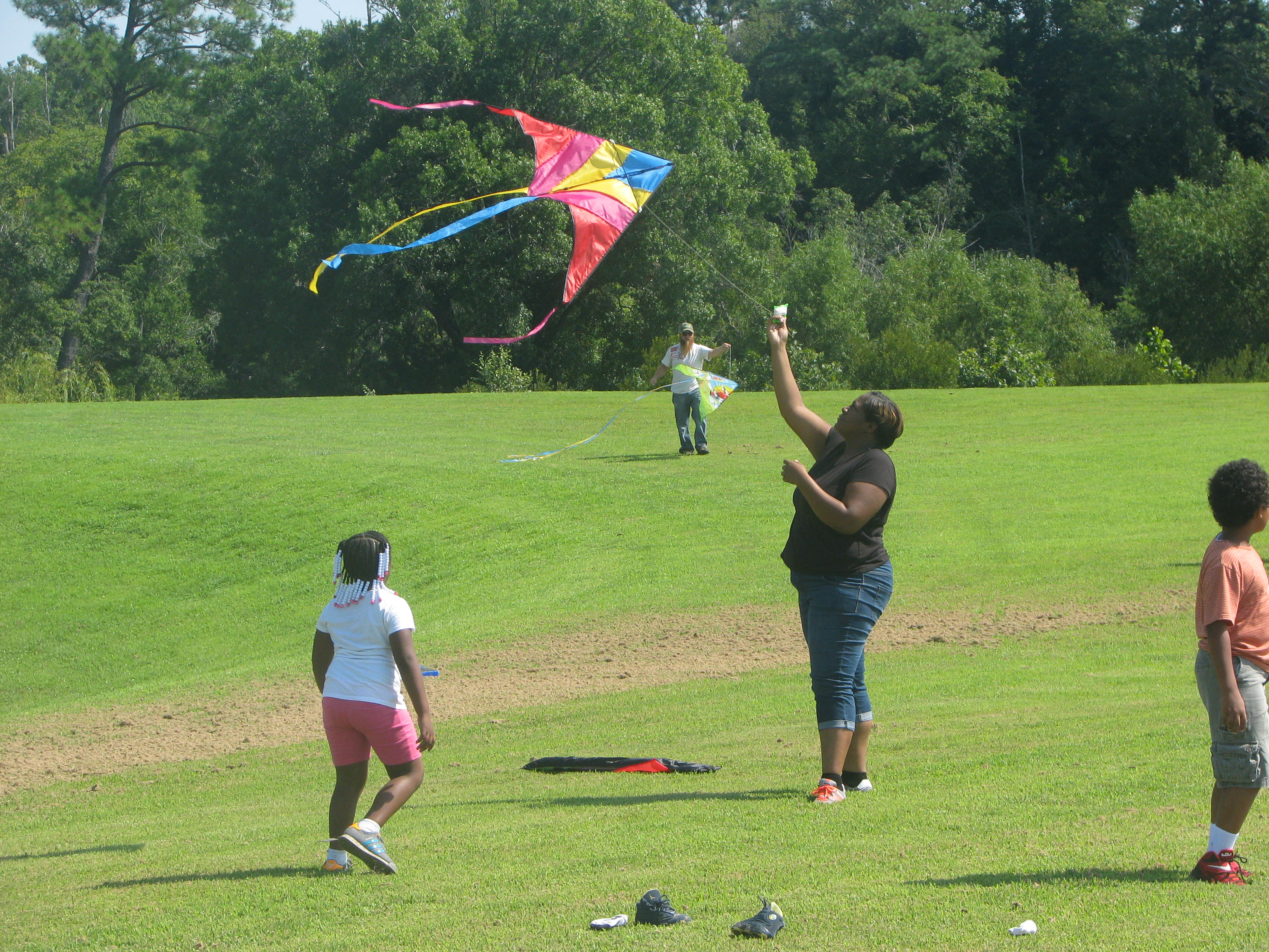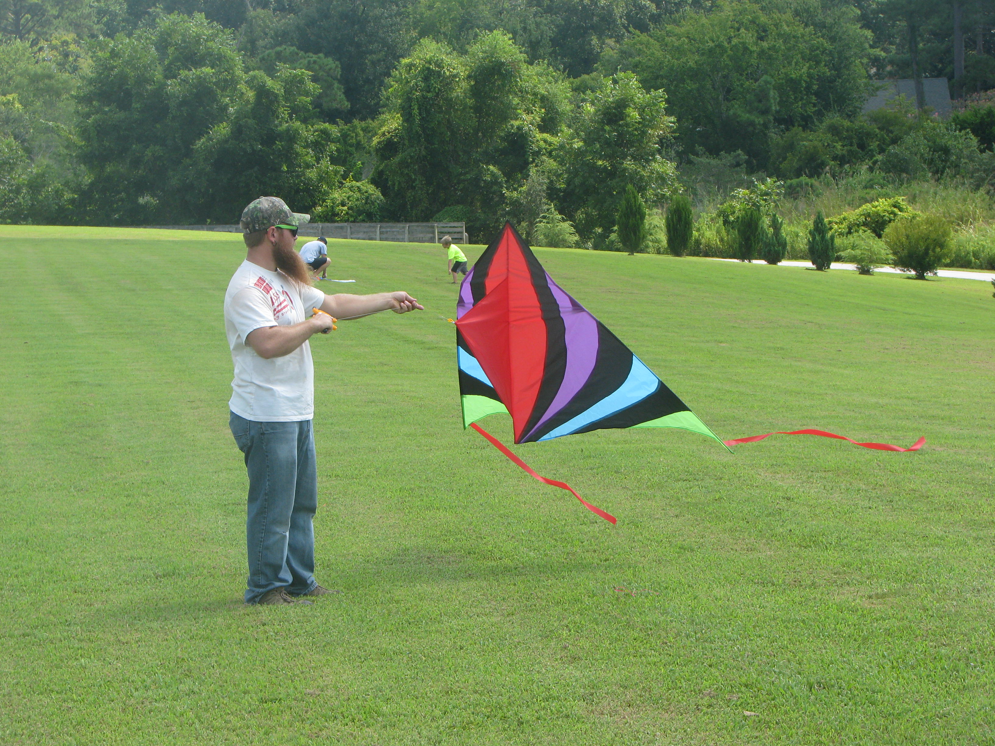 This past weekend was one of the busiest we’ve had in a while. The Carolina Kite Club was asked to participate in Kite Day at Sturgeon City Park in Jacksonville, NC. The Parks & Recreation Dept. sponsored this activity to promote family fun. The club was invited to put some kites in the sky and help those attending with their kites. Small diamond kites were provided for the kids to decorate and fly. They could also bring their own kites.