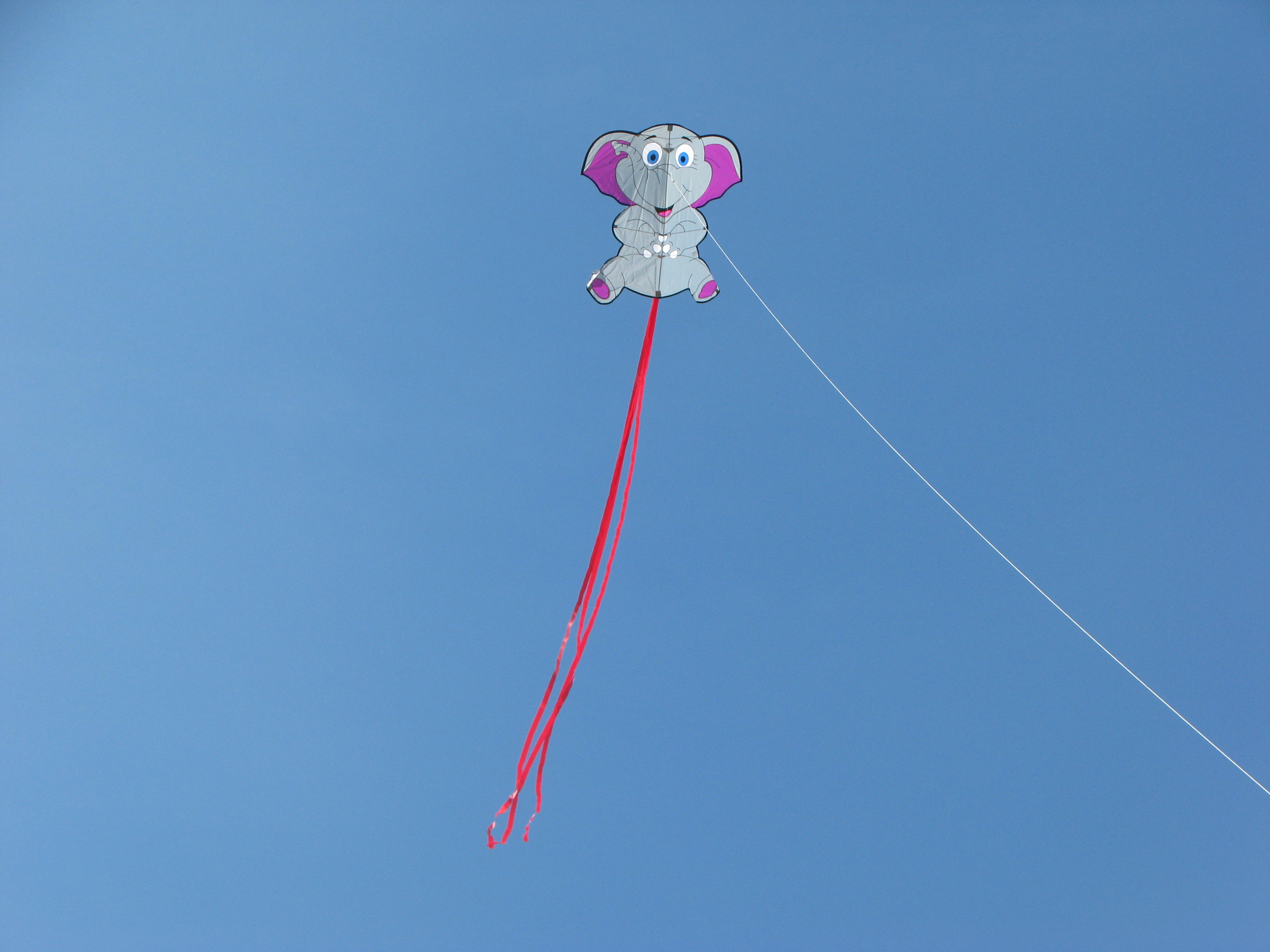 Not to be outdone, other members of the club put up a RWB delta with tails and a couple of the Critter kites by Skydog, the Penguin and the Elephant. I got out a small six-sided kite that I made some years ago and my light wind Fled. It took some work to get the kites up but once they were high enough, they flew pretty well. The Fled almost got away from me when a sudden gust of wind came up. There was not enough sand in the bag anchor and the kite started dragging it across the beach. Then the wind dropped and they all fell down. Except for that amazing delta kite.