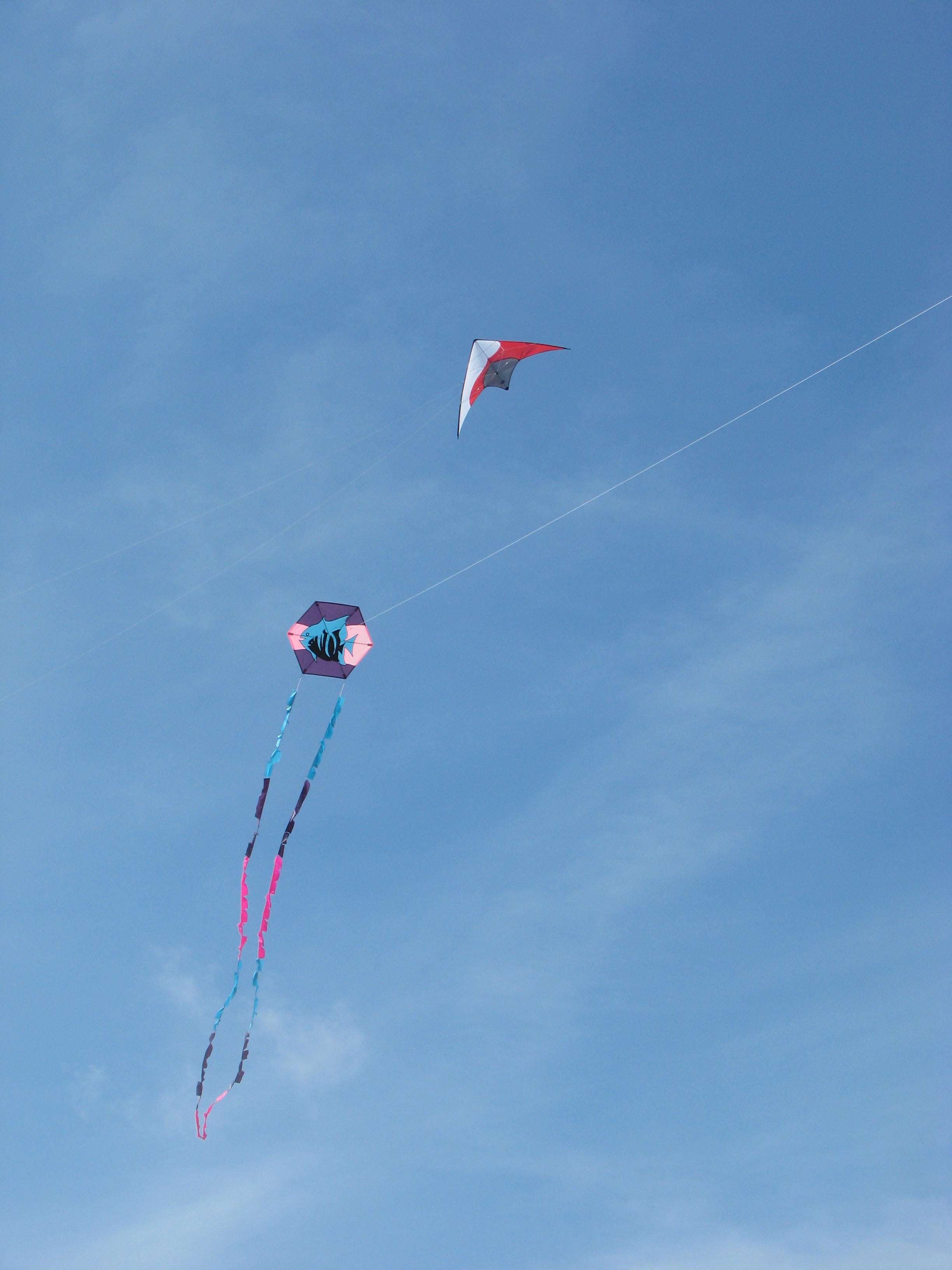 The kite flying weekend continued with the regular Carolina Kite Club fly. We almost decided not to try to fly in the 2-3 mph winds. However, when we arrived at the beach, there was a large delta in the air with a spinner trailing behind it. Logically, this kite should not have been flying in those light winds, especially with the drag of the spinner. But there it was. So we gathered up our light wind kites and went to join the other flier. To add to the amazing flight of the delta, it was flying on heavy line which was adding to the drag.