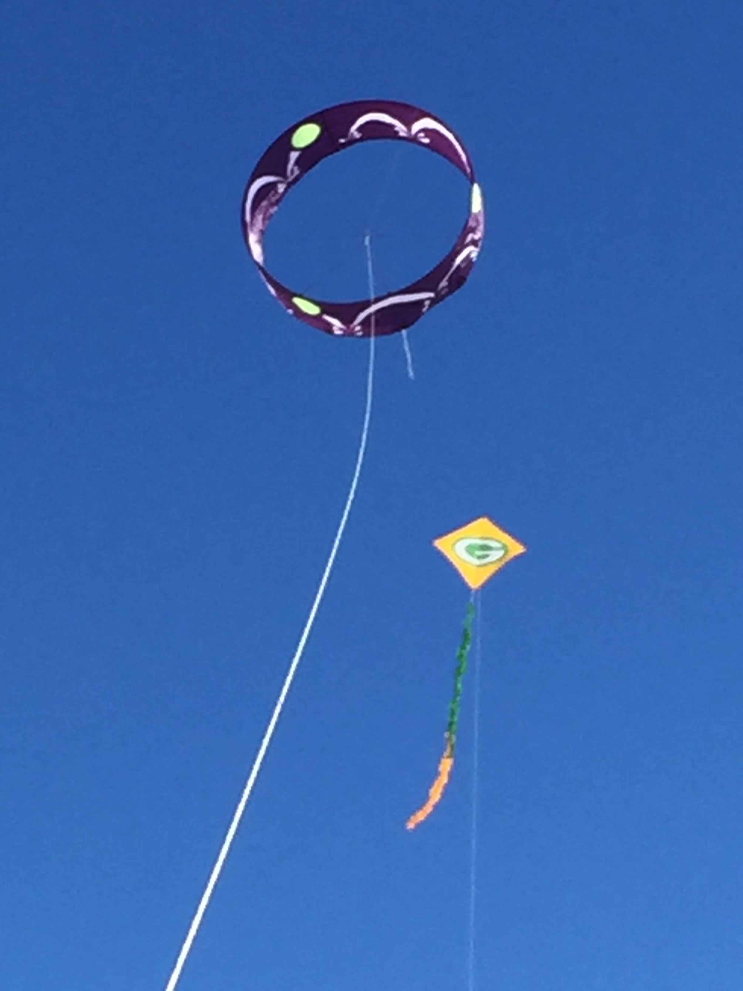 Sunday was windy. Very, very windy. Most of the kite flyers didn’t bring kites out because the wind was too strong. Us included. So the day was spent visiting and making the let of the feather trades. There were flyers who had kites that could handle the wind so all was not lost.