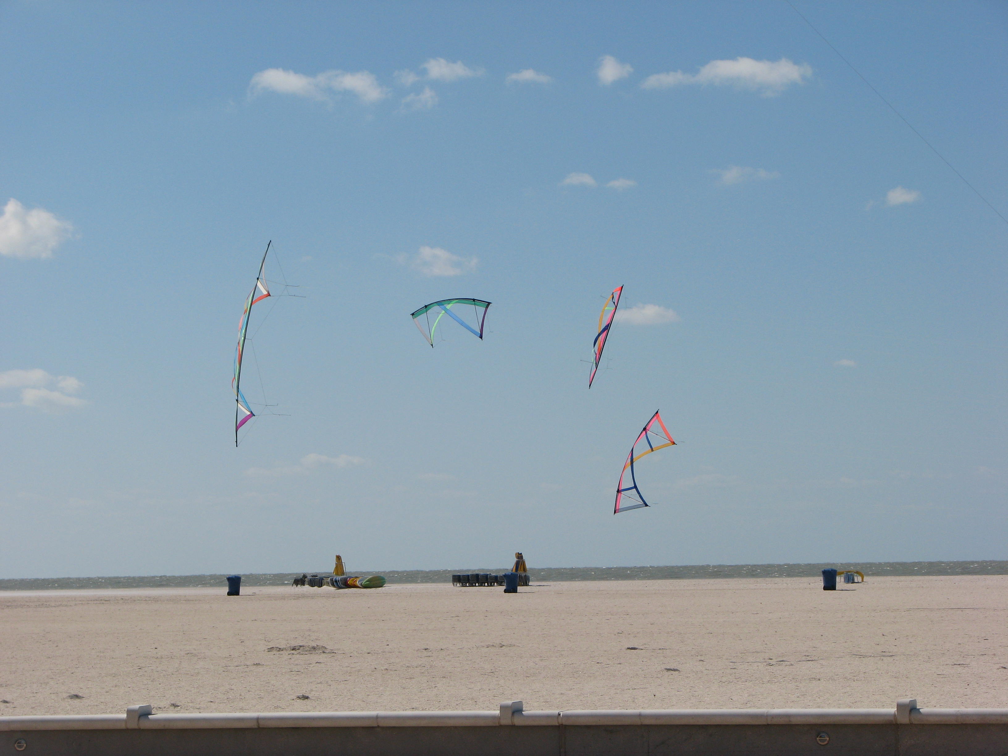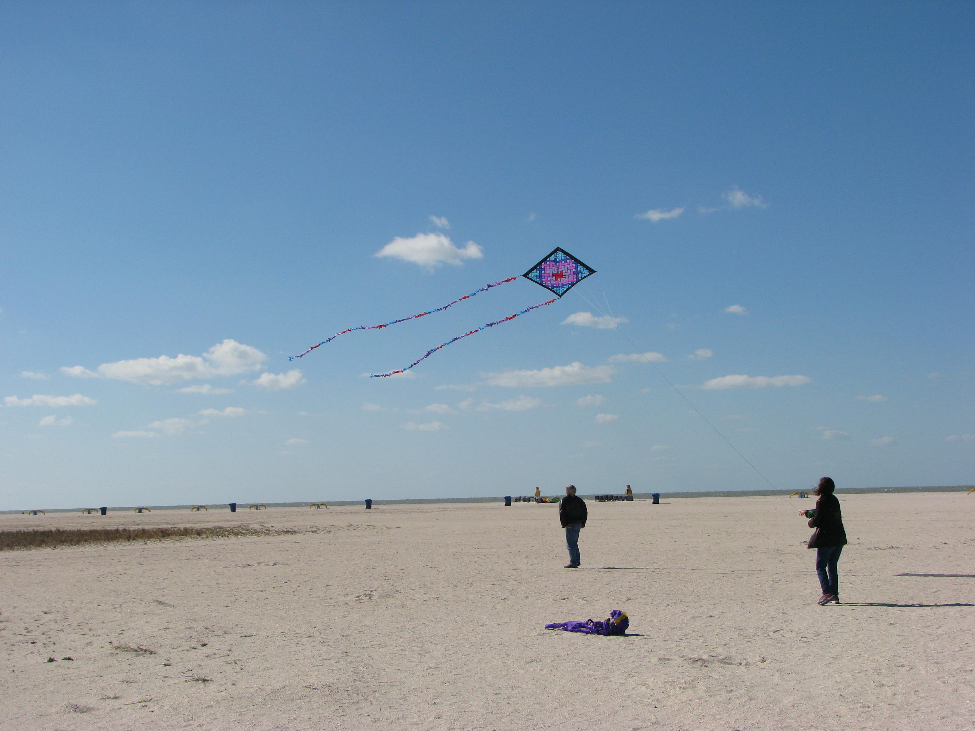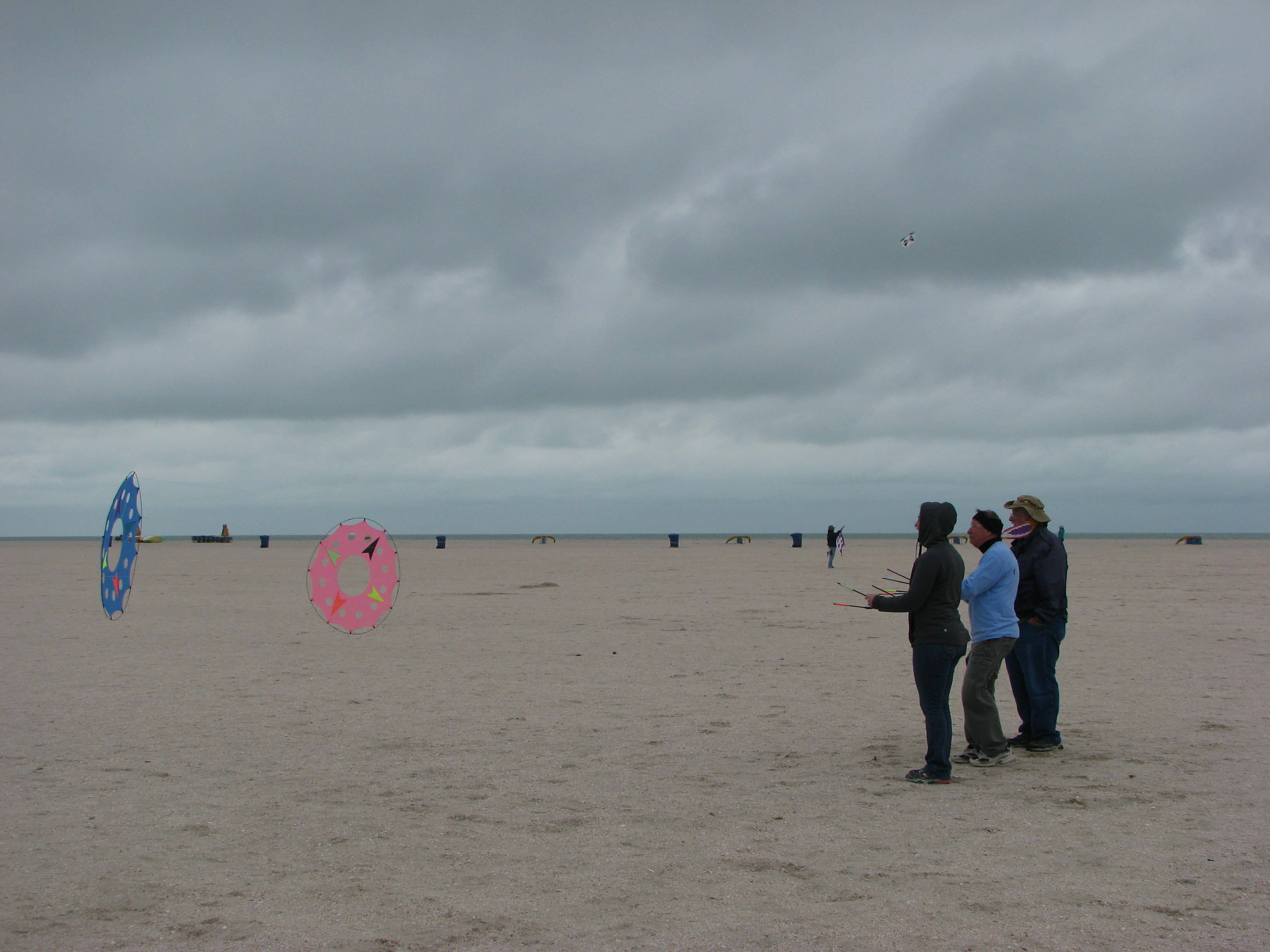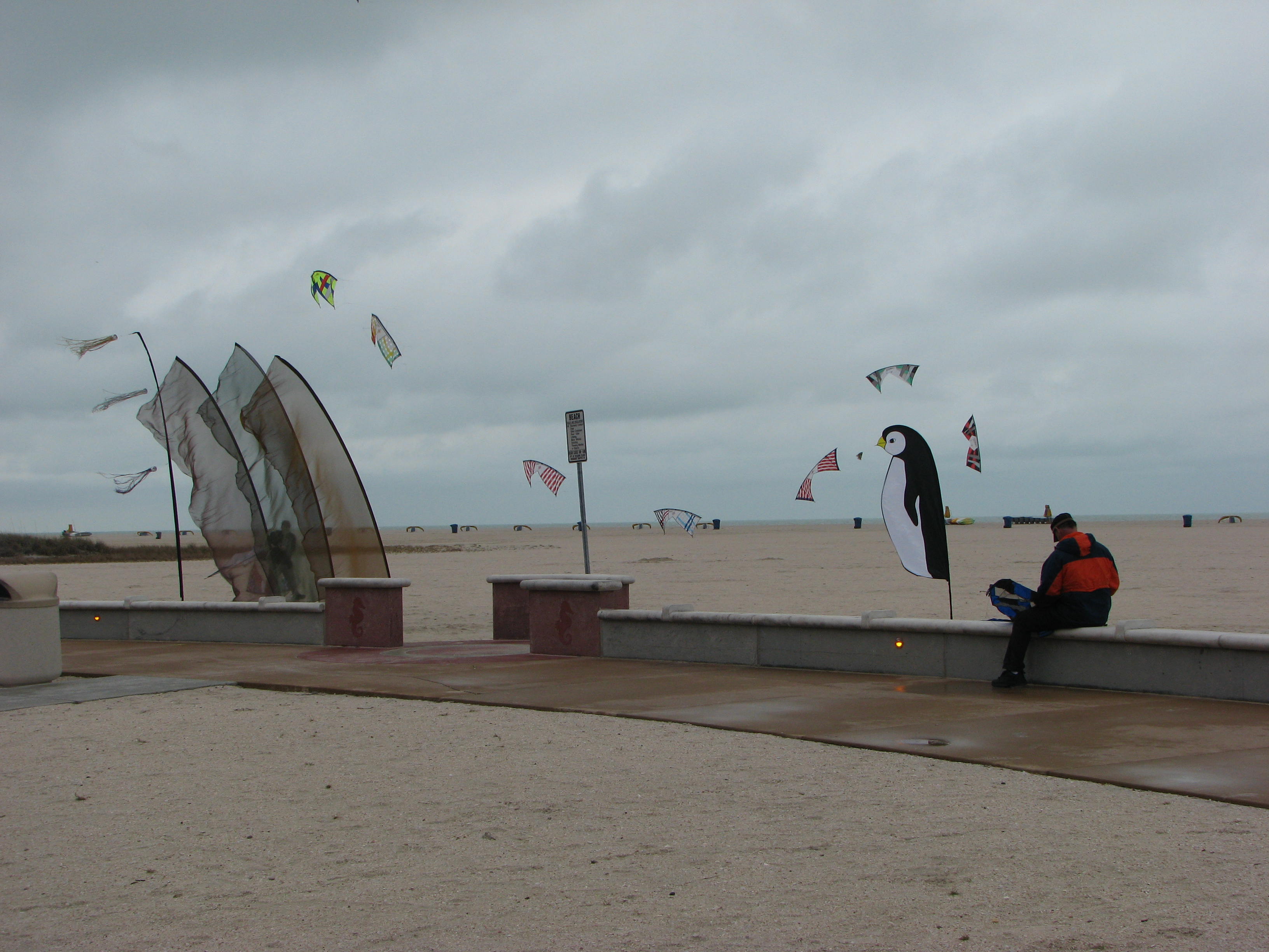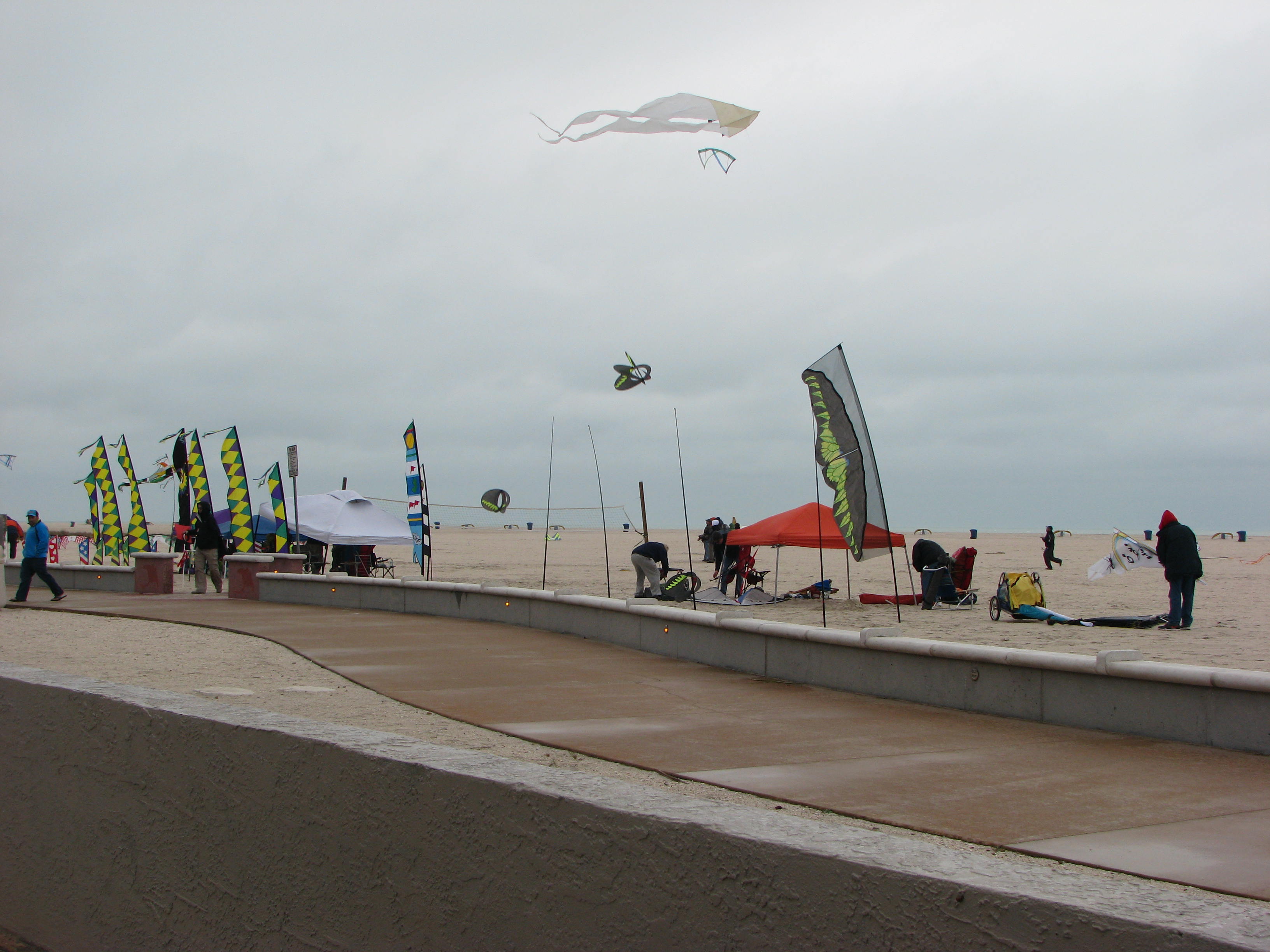 We arrived a day early in order to get our bearings and a little rest after the two-day drive. I did get out on the beach for some flying. Winds were light and gusty and the temperature was cooler than it should be. But I did get up a couple of kites. I was especially pleased that my mini-circoflex flew. I hadn’t had it out of the bag in quite some time. There were several other kite flyers taking advantage of the day. Several deltas and couple of large flowforms were in the sky also.