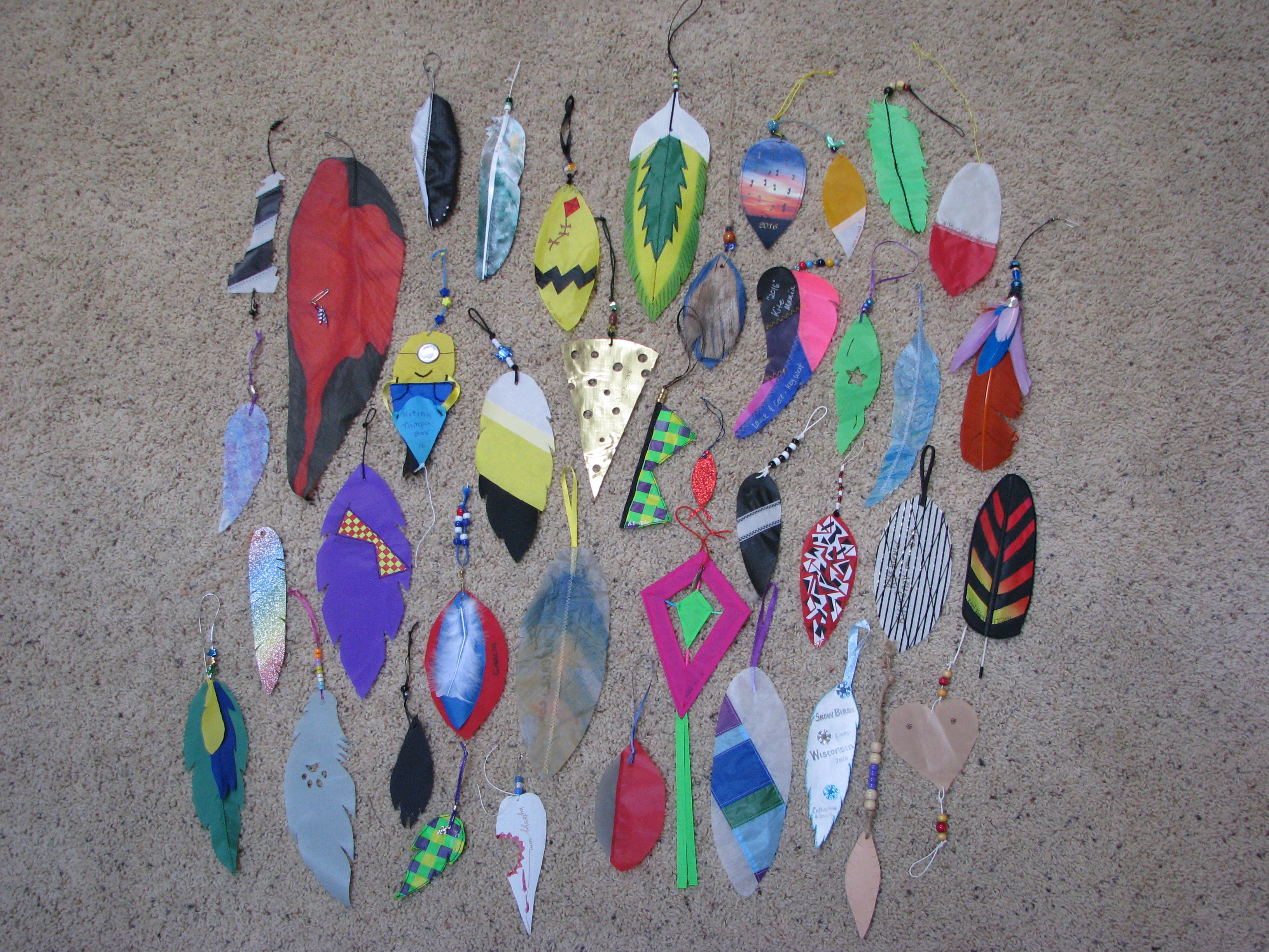 Ah, yes, the “feathers”. An activity that was unique to this gathering is the exchange of “feathers”. Those attending this gathering create feathers out of ripstop nylon, tyvek, fabric, paper or anything that is at hand. The feathers are then traded as the weekend goes on. The trading brings old friends together and gets everyone actively involved in meeting new people. It almost becomes a competition to get as many feathers as possible from as many people as possible. The range of creativity is amazing. The feathers are sewn, glued, painted, dyed, printed and colored with markers. And are made in all shapes and sizes. A couple were even made out of actual feathers. Each feather has a story and will trigger memories of this gathering for a long time to come.