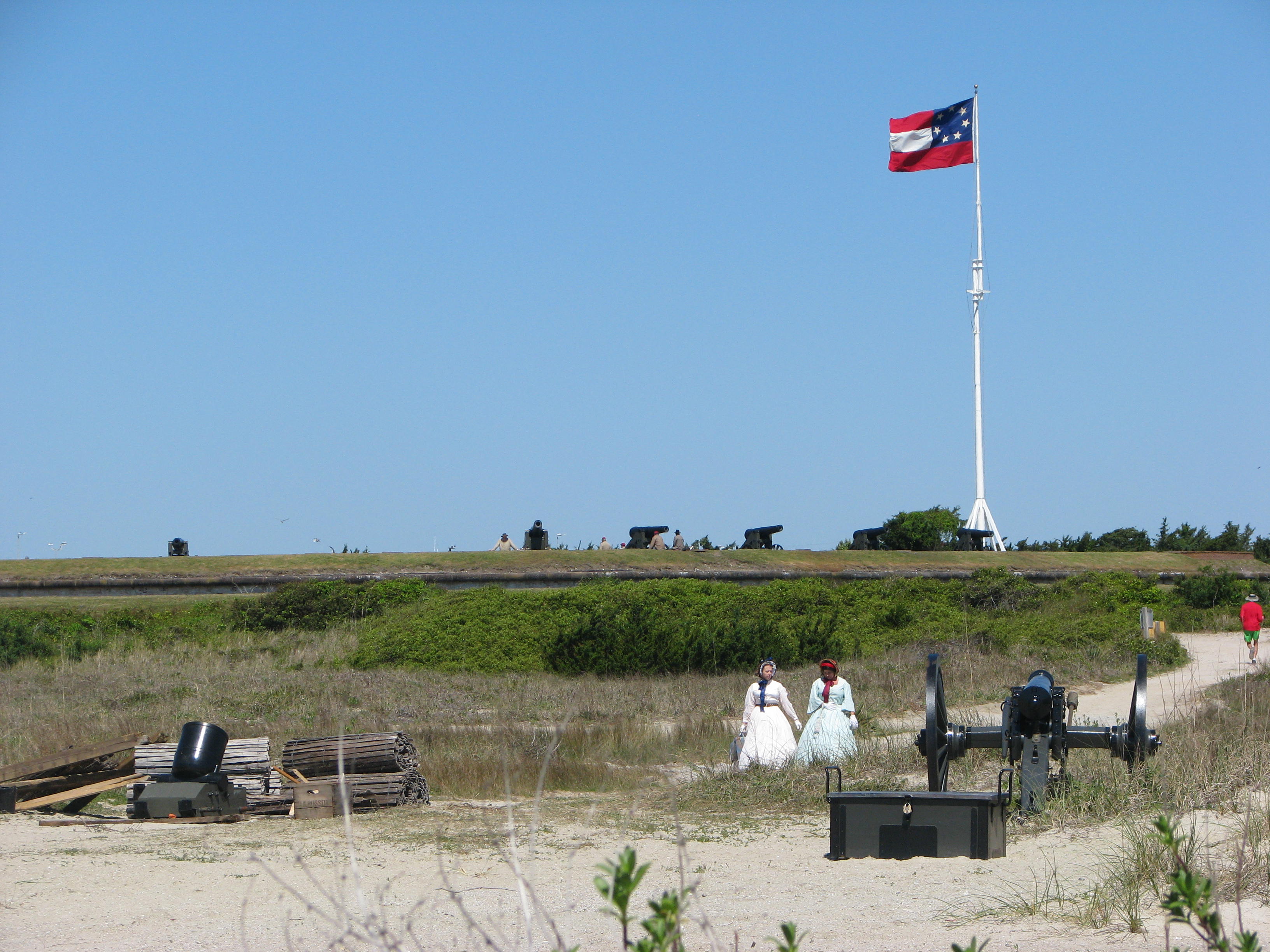 During the day, the Confederate forces held the fort and were bivouacked inside. The Union forces were laying siege to the fort and were camped on the beach, with their cannons and mortars. Right alongside our flying beach. In fact, we had to go around a barricade across the path in order to get to the beach.