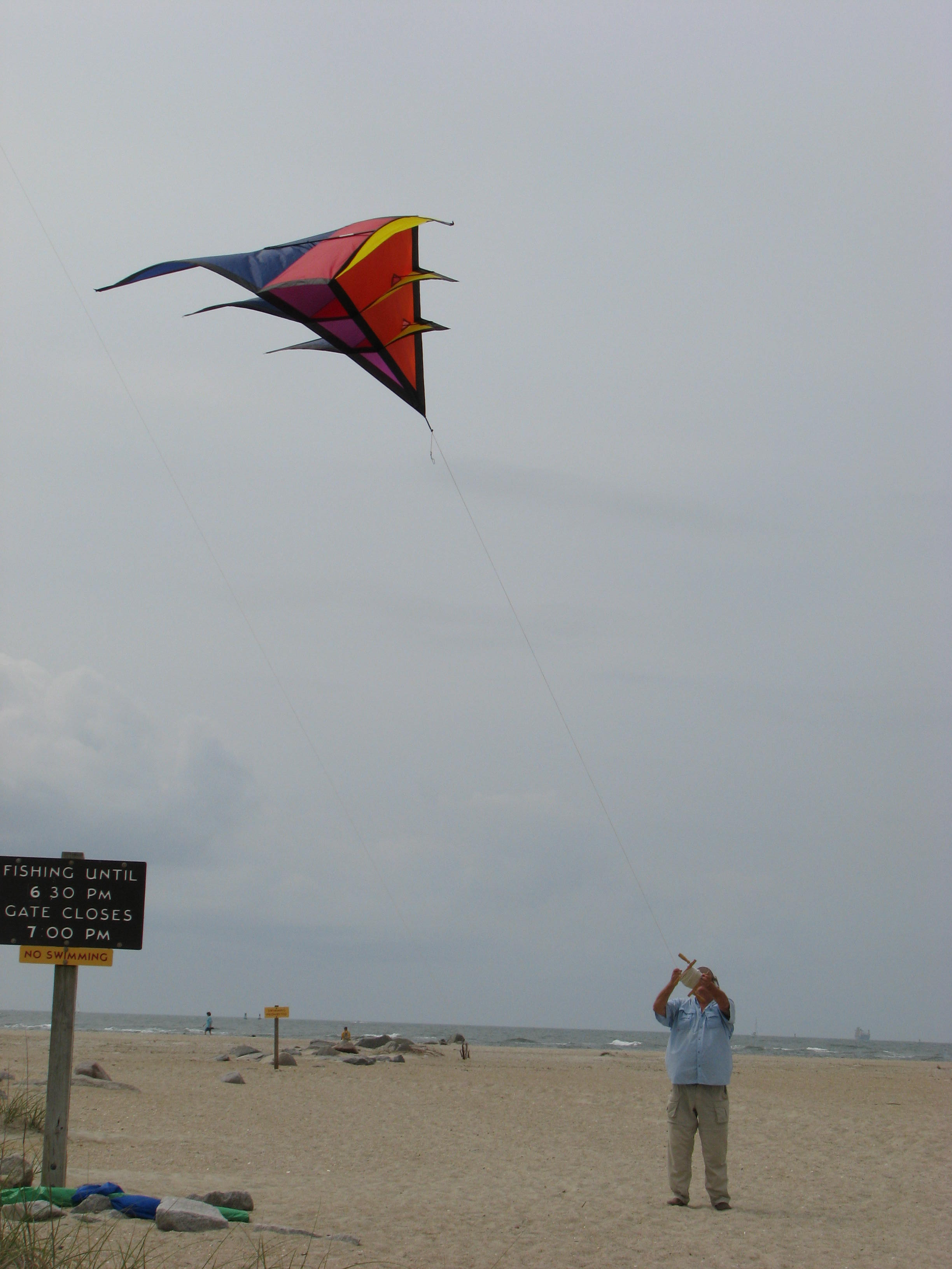 A person couldn’t ask for a more beautiful morning. The temperature was mild, the sun was out and the winds were light, in the 5-7 mph range. The clouds moved in not too much later but the beach was still the place to be. This was the day for the first flight of my new light wind kite, the Laima. It looks like a bird soaring high in the sky and floats on the lightest of winds.