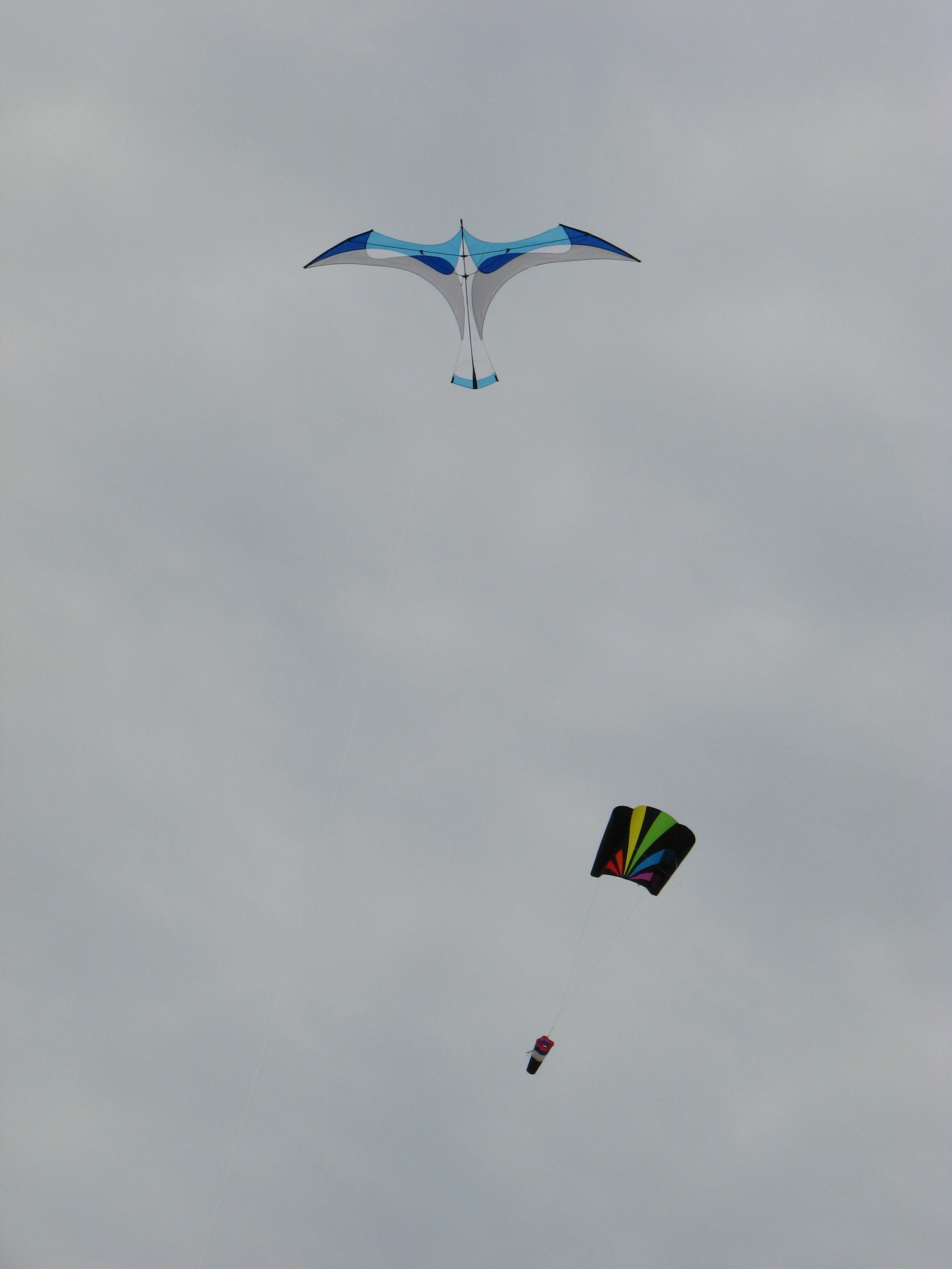 There was quite a variety of kites in the air along with my Laima; a white Ghost delta kite with a jellyfish on the line, the low-wind Skate, a Triangulation and a smaller power sled.