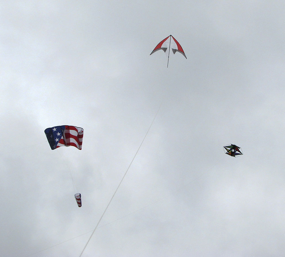Keeping in mind that the weather could change at any minute and we would have to run for shelter, every kite was hand-held. I flew the Wisp II for a bit but the wind was a little strong for its light build. I also put up the Skate, which handled the wind quite nicely for a light wind kite.