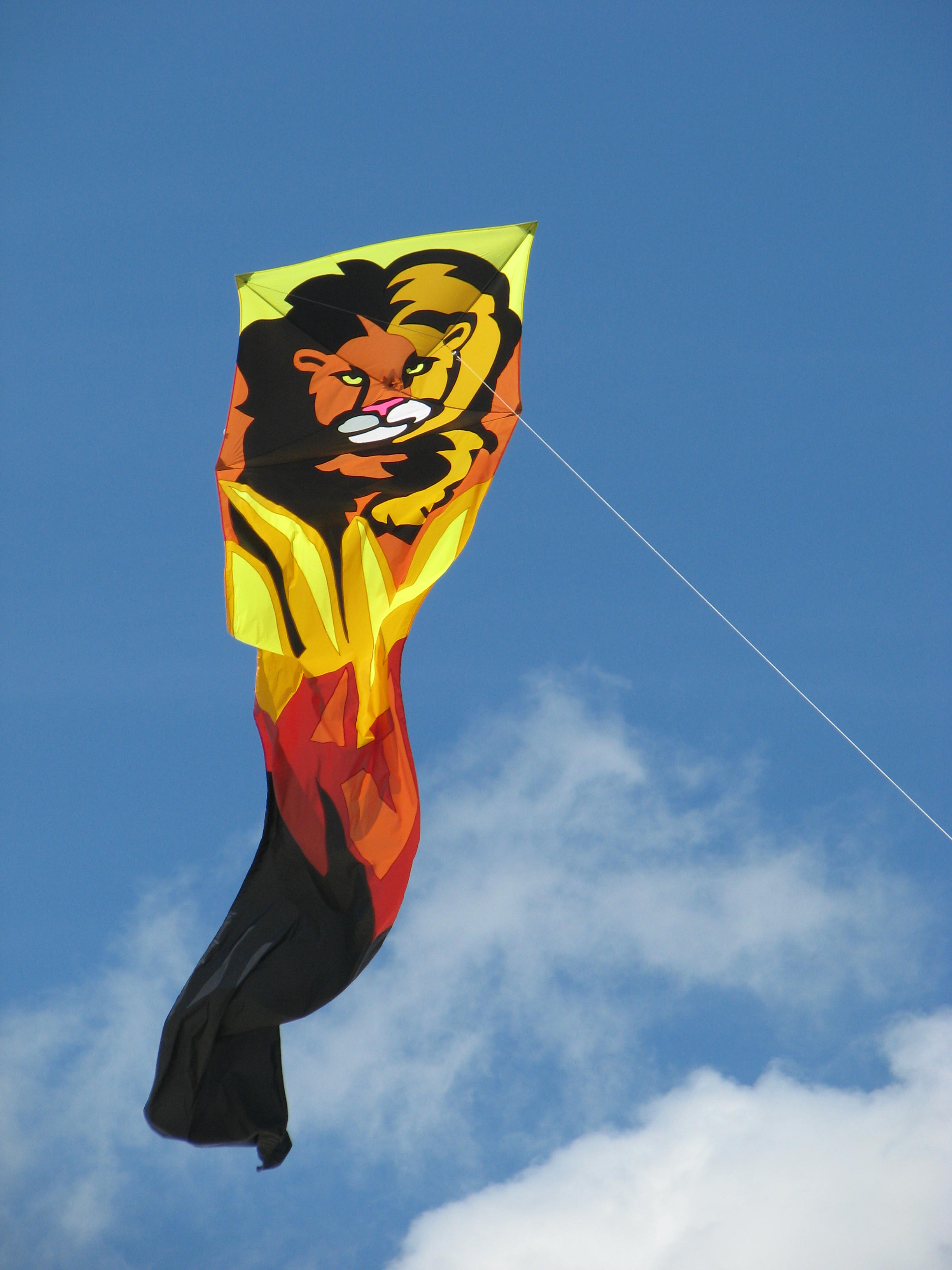 The slightly higher winds were perfect for the two larger kites we wanted to fly. The first was the large skeleton kite that is a new release by Premier Kites this year. They have three styles of skeleton kites in two sizes. While I don’t normally go for big kites, on a whim, I did get the larger of the skeleton kites. After seeing it in the sky, I’m glad I did. The other kite was a one that has been in our bag for two years without being flown. It is a square-headed dragon kite with a lion motif. It is a beautiful kite made by Go Fly A Kite, a company no longer in business.