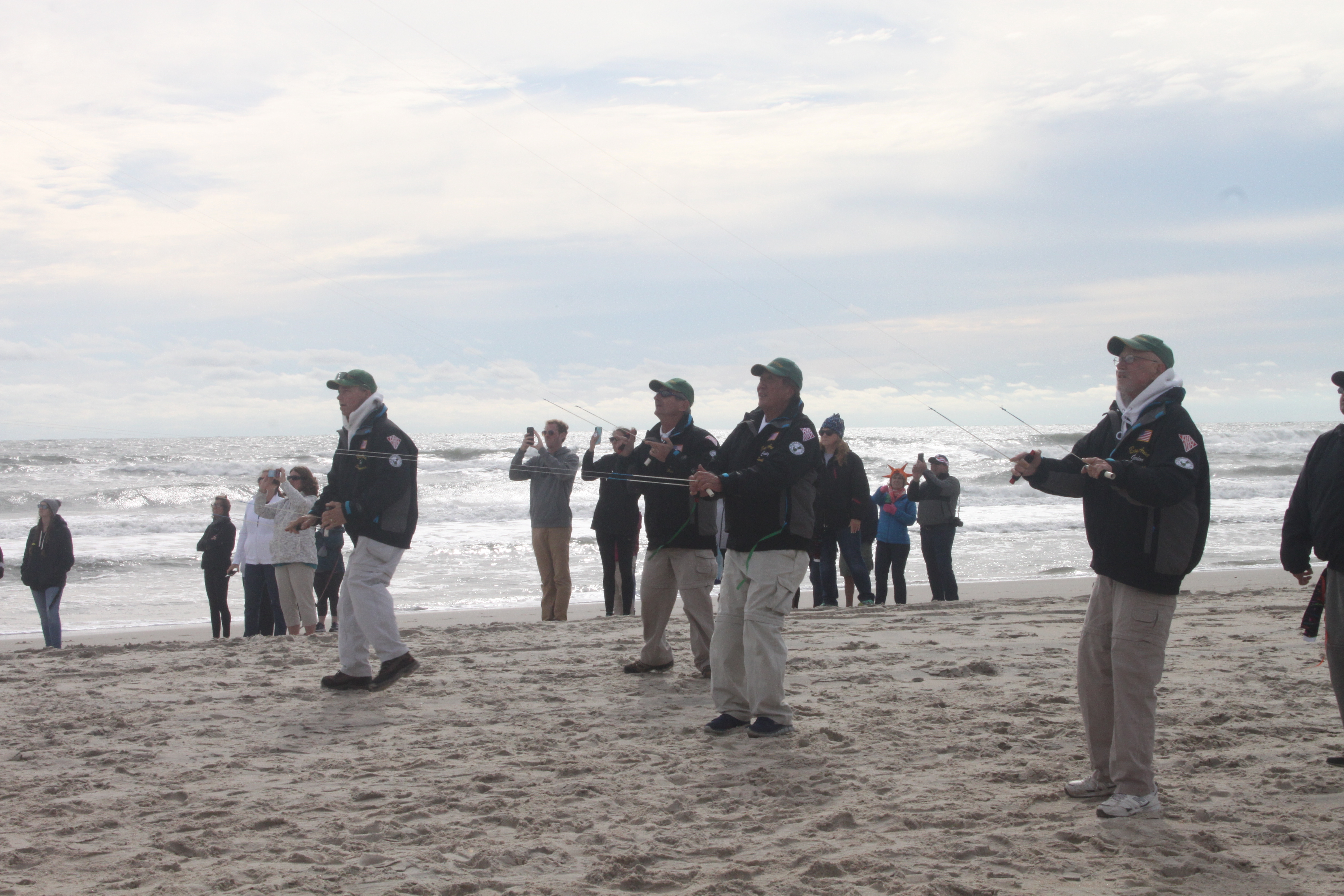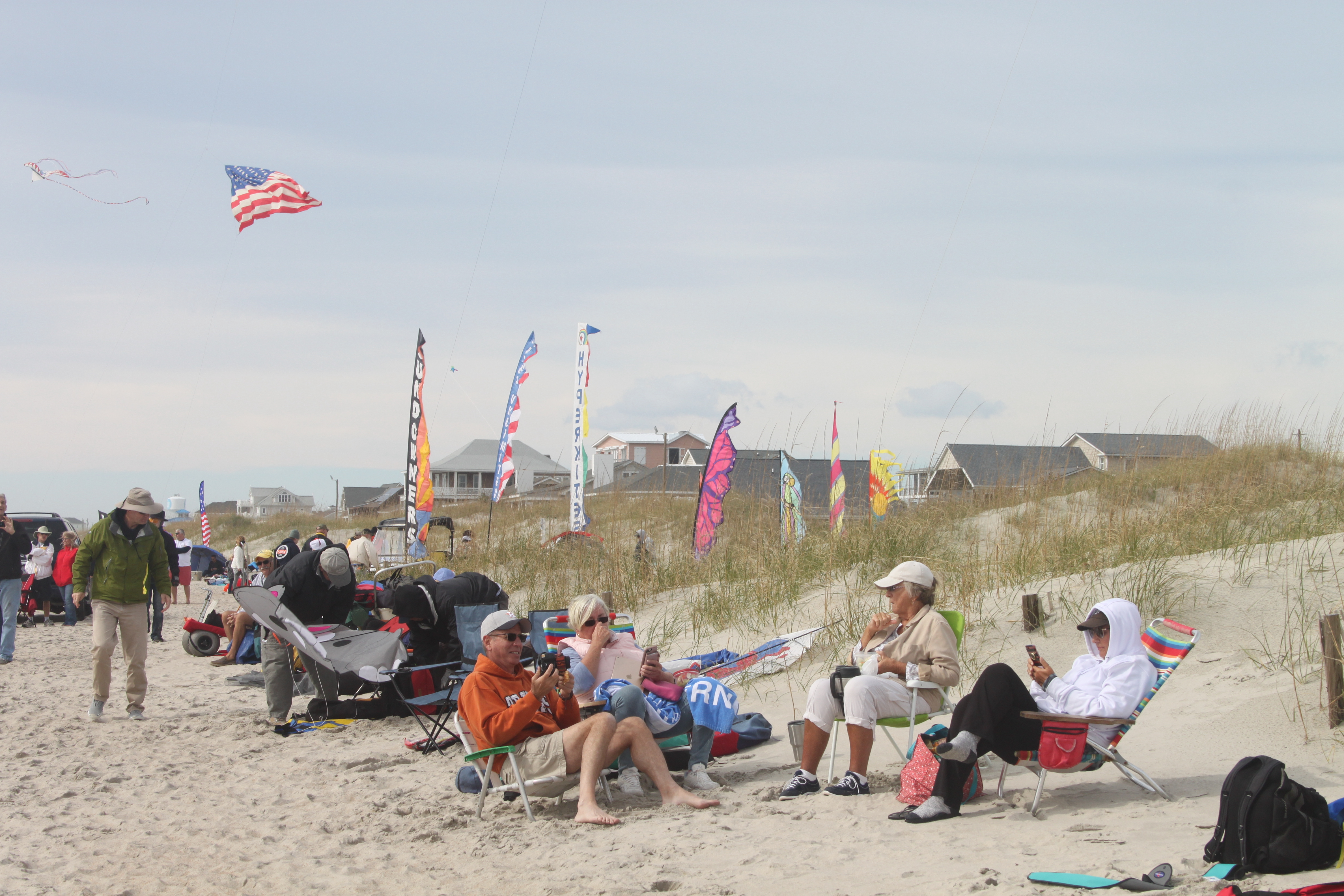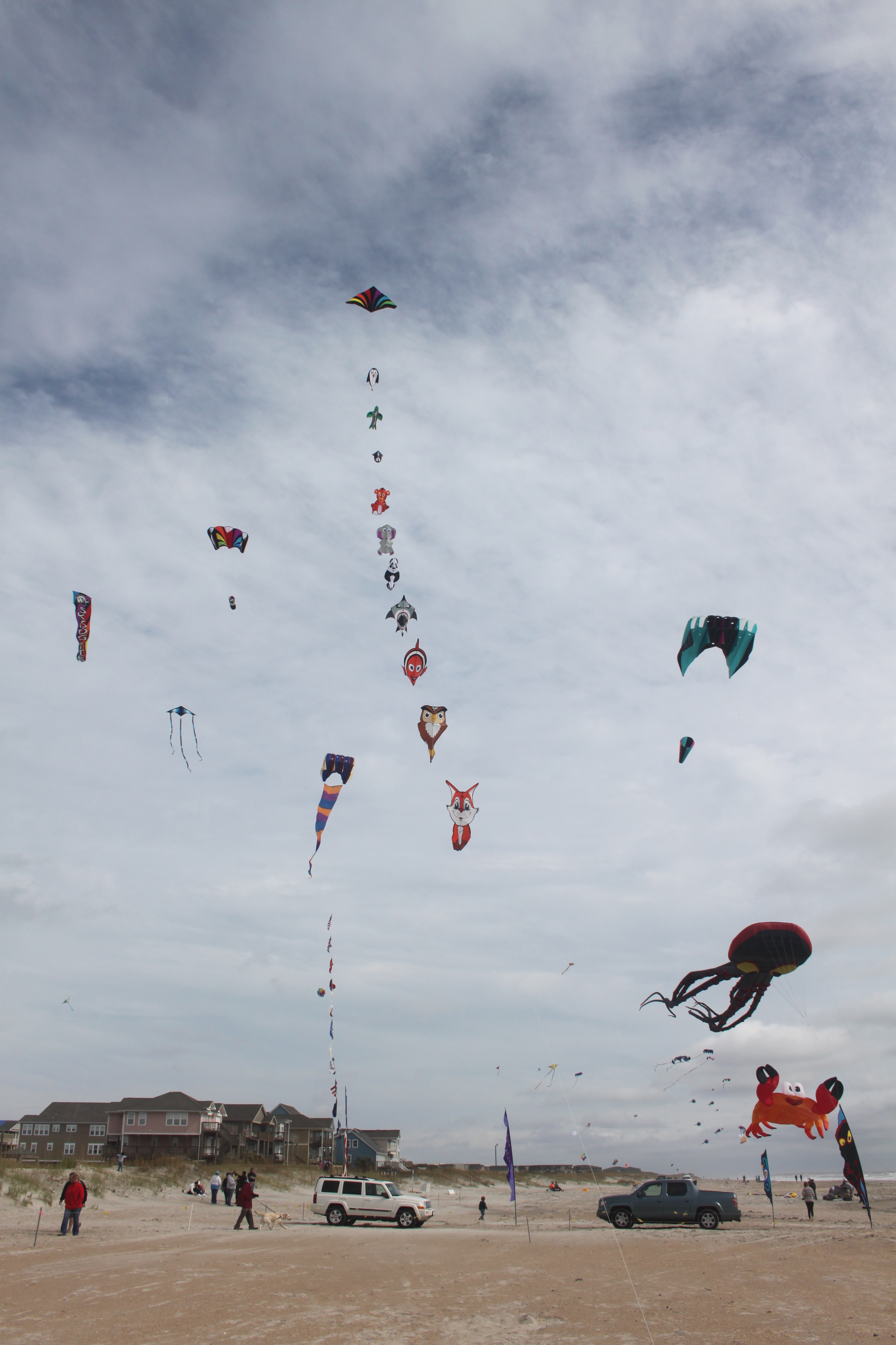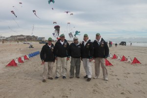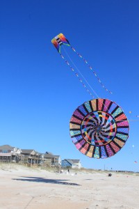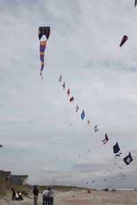 On the third kite field, the stunt kites were flown. Dual line and quad line stunt kites were in the air as the wind and the whim of the flyers allowed. Along with all the flying, there was a kids’ kite building table for children to decorate and assemble a small sled kite and a candy drop from a high-flying delta kite. A few brave souls even went out on the beach Saturday night to fly their kites with lights on them. I emphasize “brave” as it was very cold after the sun went down.