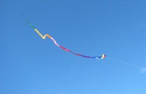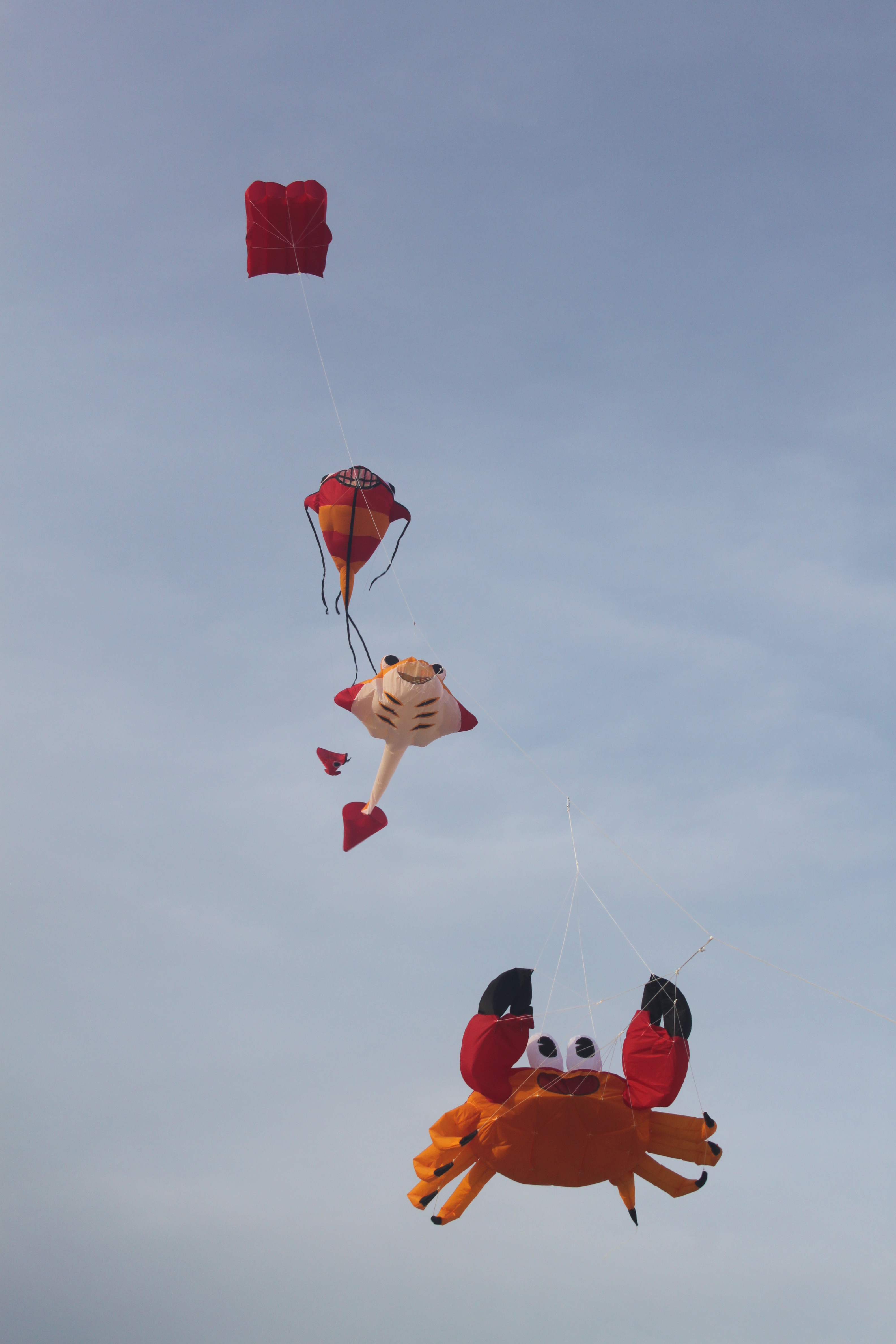 My new kite from Peter Lynn of New Zealand arrived just before the festival. Unfortunately, the winds were too high for me to fly it. So in the middle of the week we made a trip to the beach to put it in the air for the first time. It is really a kite show in a bag. It is made up of a lifter kite and a fish, a skate and a crab to hang from the flying line. I was a little nervous as I never had flown anything like this before but I’m not nervous anymore. It was a breeze to put up and really looked great. I couldn’t stop smiling.