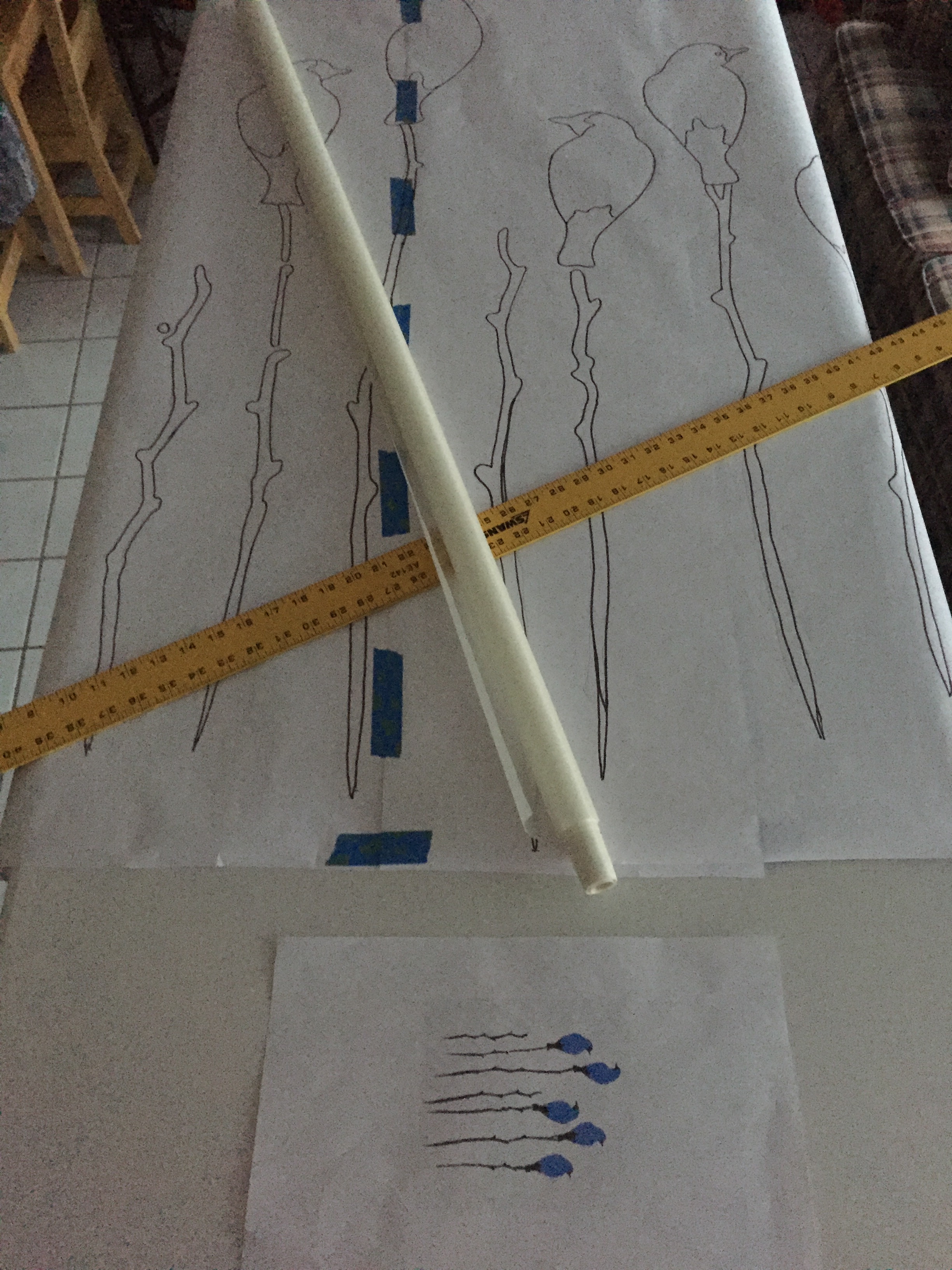 I really wanted to do this kite in the blue that was on the drawing. However, I don’t have a good middle hue blue that would work. So I’ve decided on a teal and a golden yellow. Don’t panic! The branches and bird accents will still be black. You’ll just have to wait to see what the golden yellow is for.