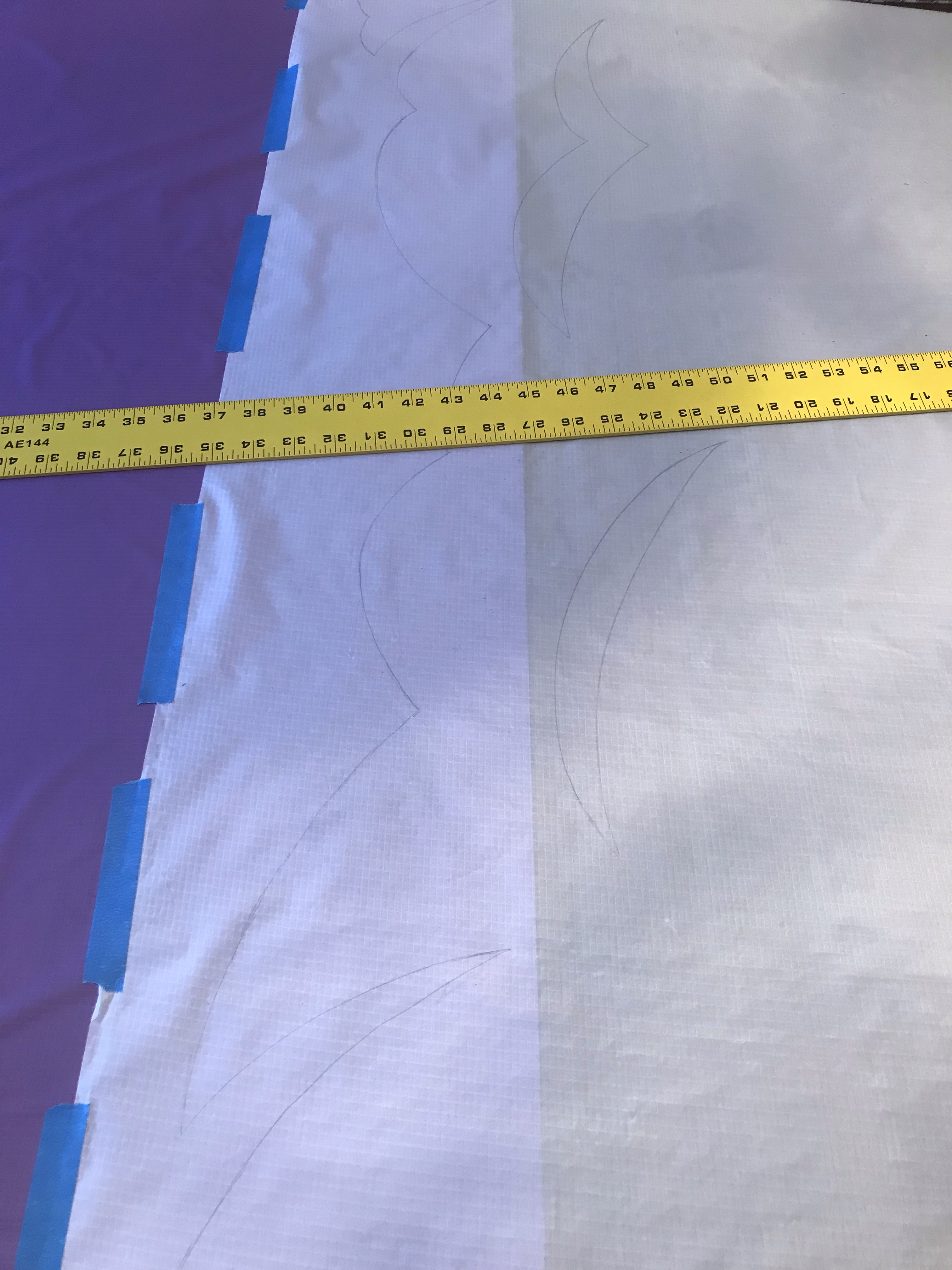 While housebound, I started sewing on a Van Hienen Shield. Instructions for this kite are found on the Kitebuilders.com forum. Each week a new step is published. And the instructions stay online so if you fall behind, it’s easy to catch up later. This weekend is for cutting and hemming. Next is the applique. When the skin is complete, the framing begins.