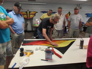 During the Maryland workshop, we picked up some kites to add to our collection. And, of course, we had to put them up as soon as we possibly could. John got a square-headed Skydog dragon kite. It has the Skydog logo on it and matches his Skydog rokkaku kite. I got a Joel Schulz parrot kite by Go Fly A Kite. Both are in perfect condition. And both loved the wind and looked great.