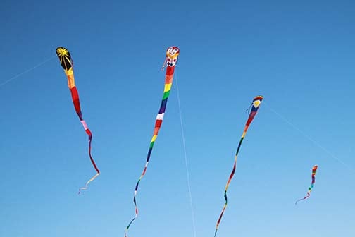 These were just right for this day. No pull on the lines at all. Just hanging in the sky with little attention needed. Perfect for sitting on an empty beach soaking up some sunshine.